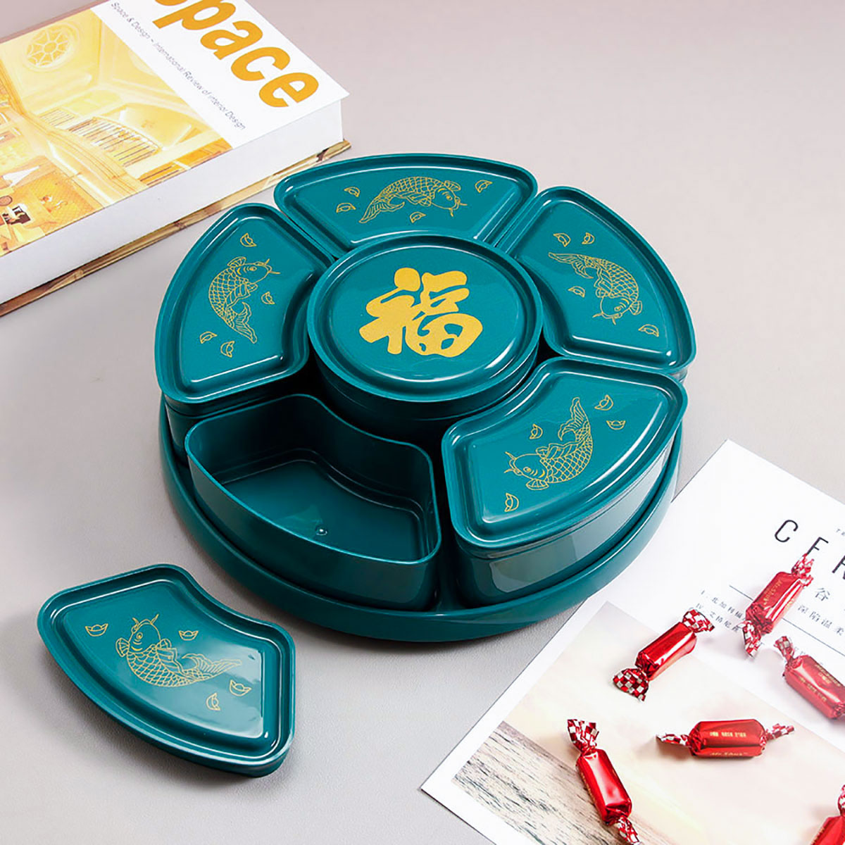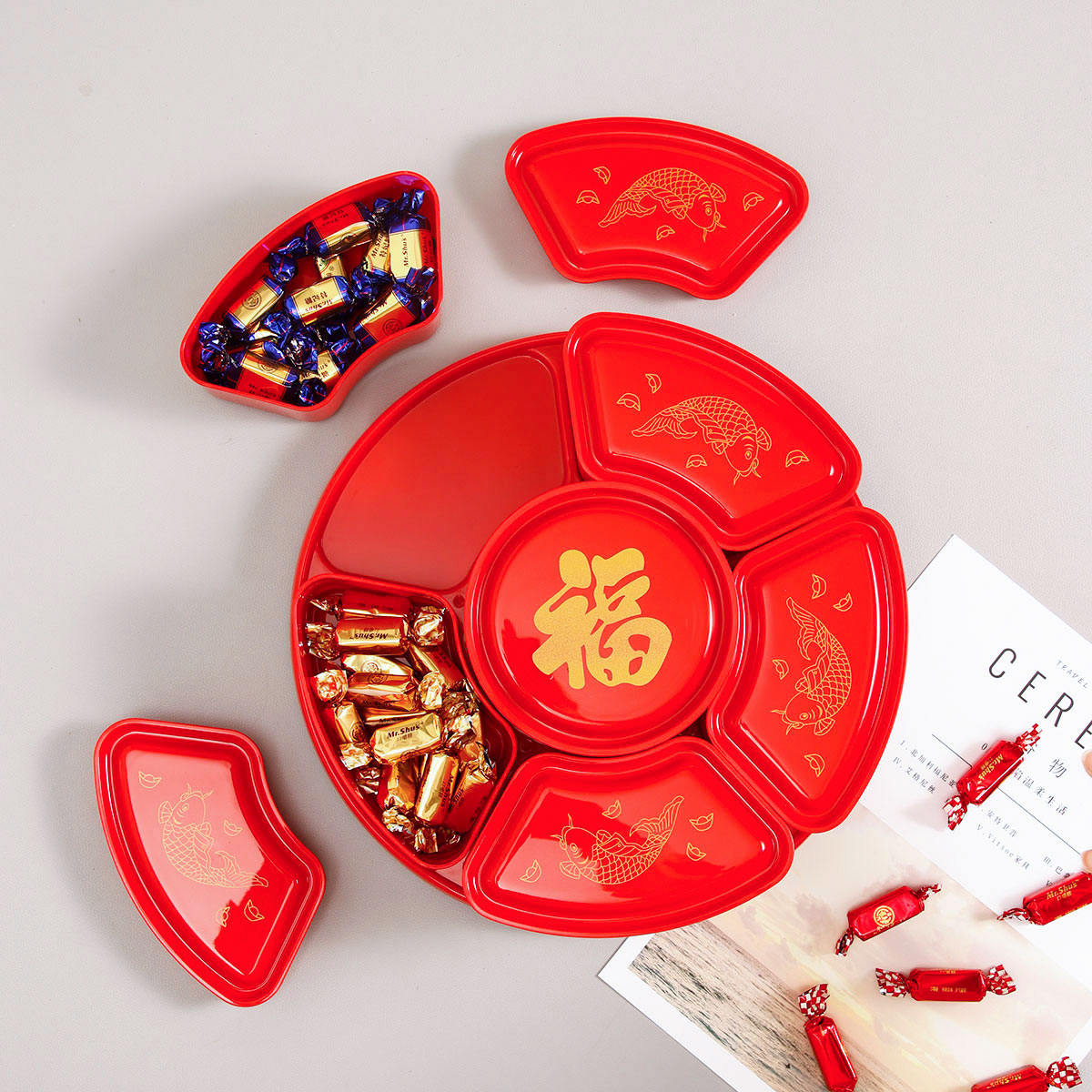 福魚旋轉糖果盒(紅/綠)