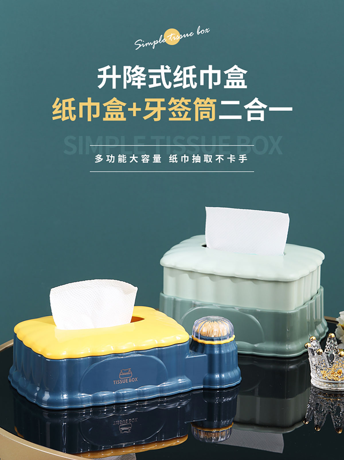 北歐升降紙巾盒/帶牙簽筒