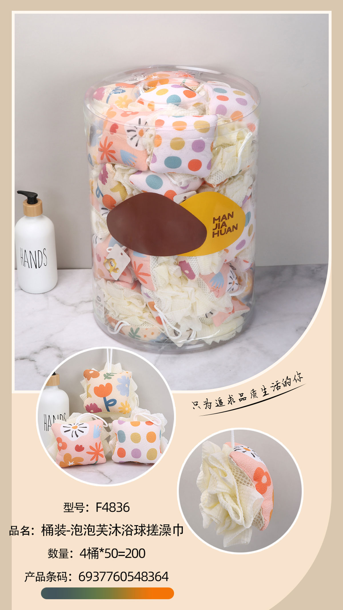 桶裝-泡泡芙沐浴球搓澡巾