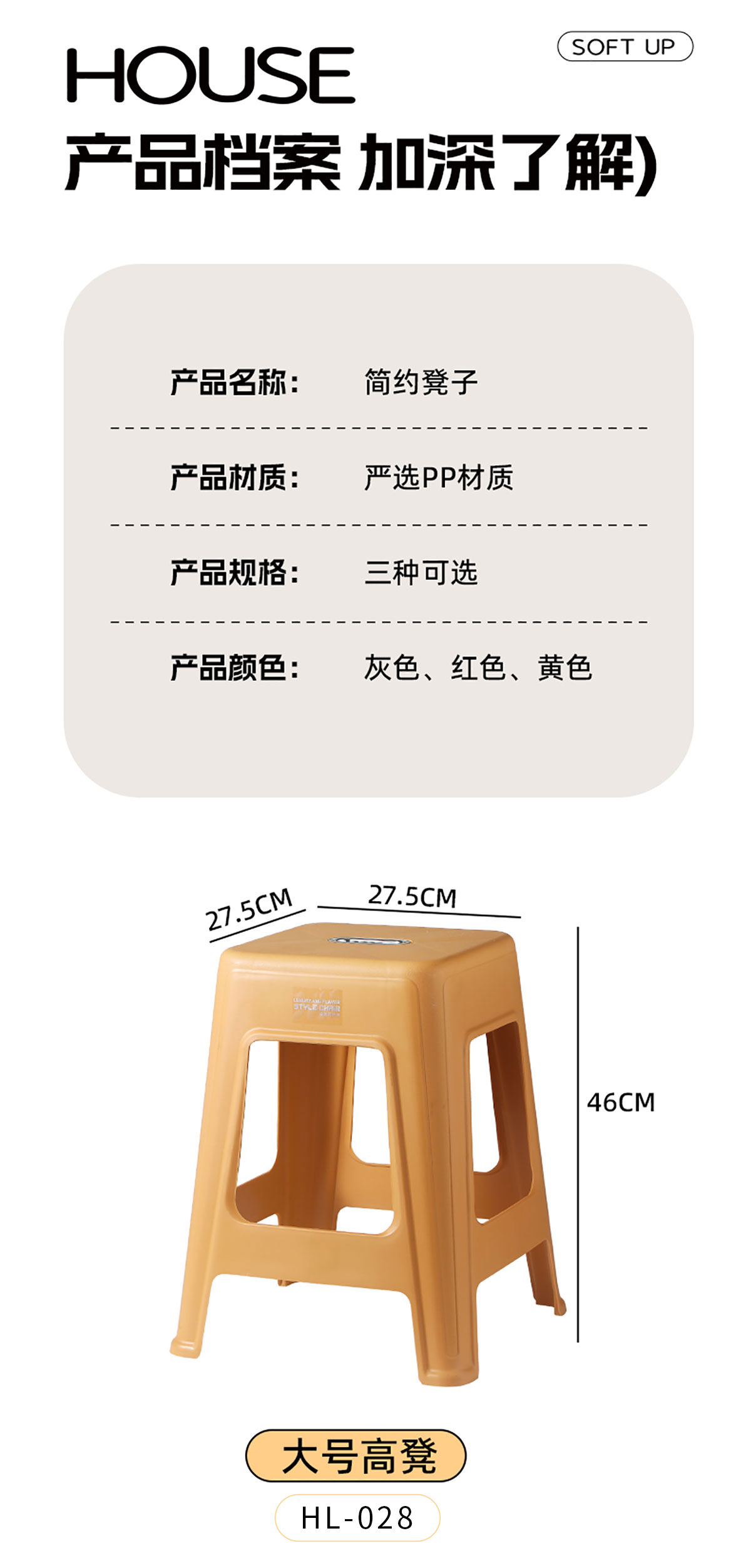 Size: HL-028(大號高凳):275*275*460mm