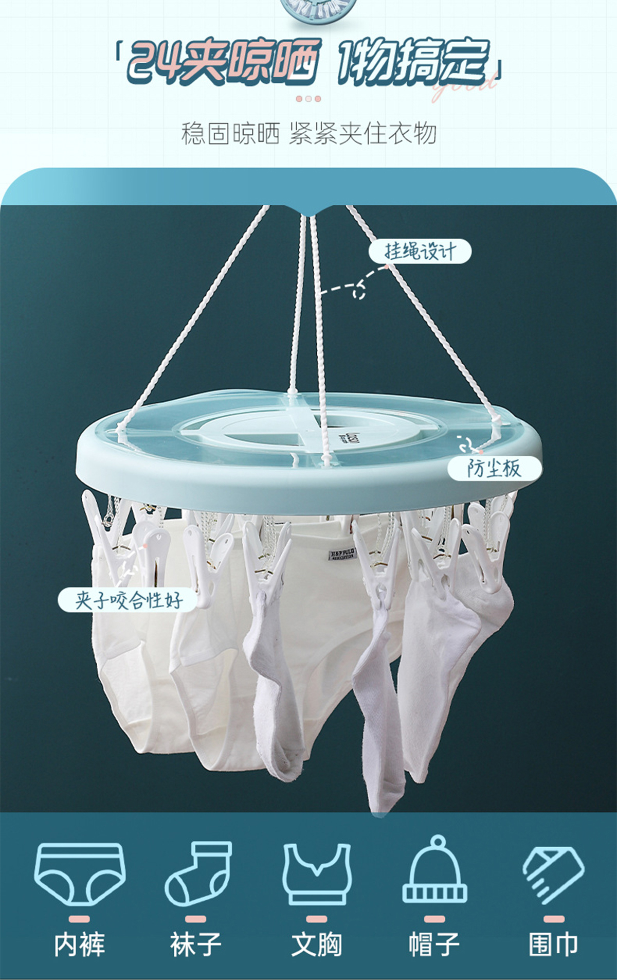 晶彩圓形24夾晾衣架 2023年新色