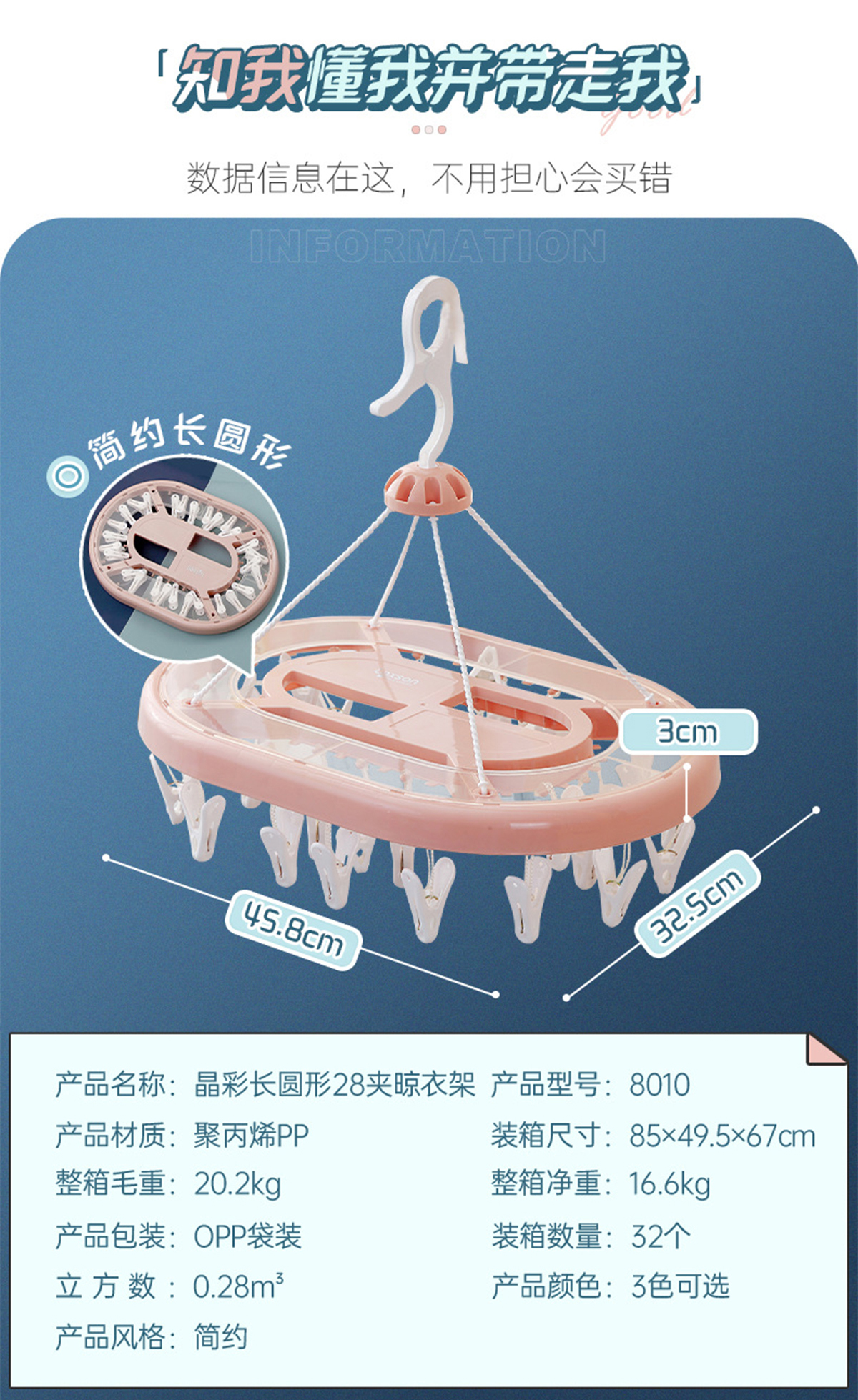 晶彩長(zhǎng)圓形28夾晾衣架 2023年新色