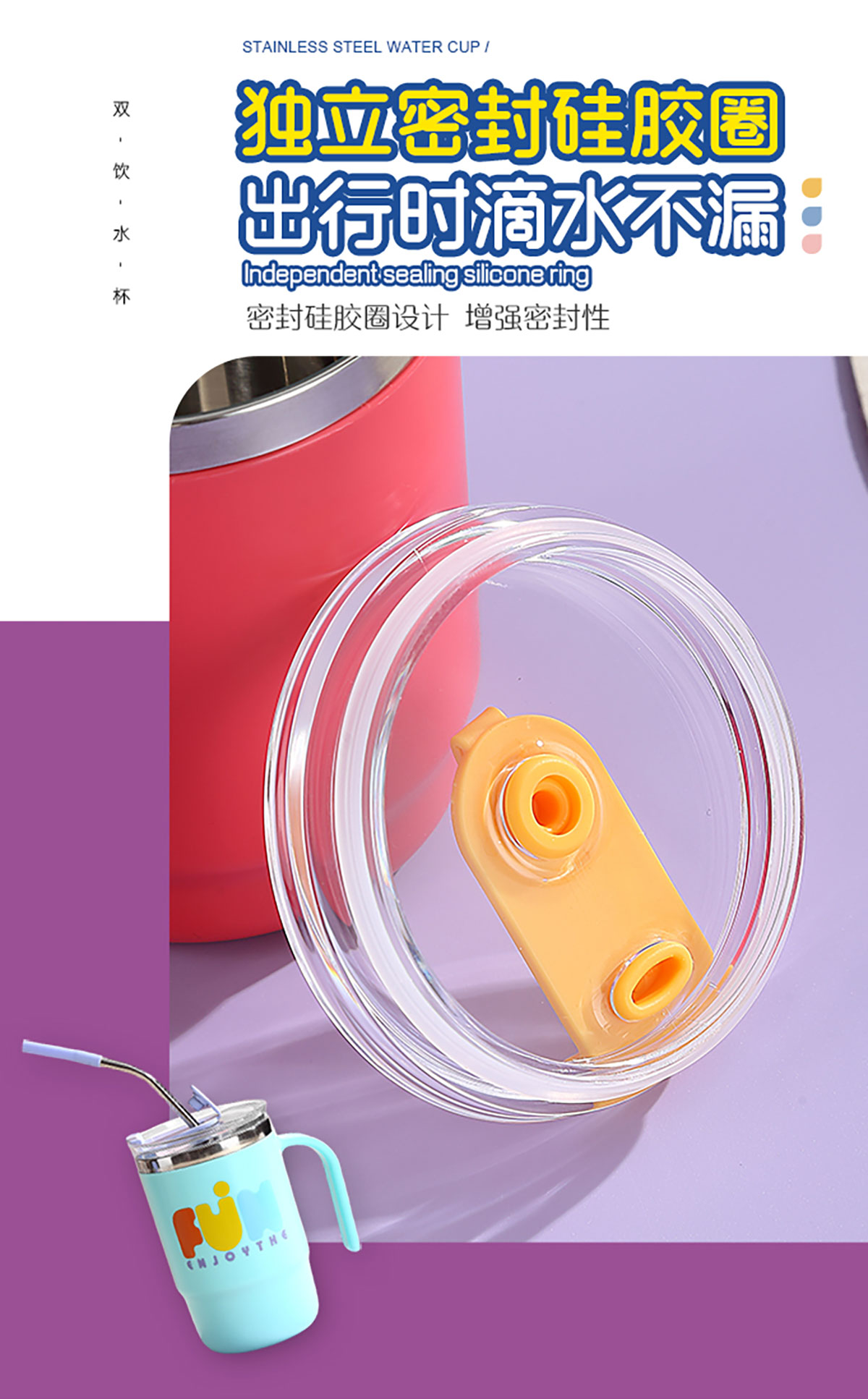 400ml/500ml時(shí)尚不銹鋼雙飲杯(配不銹鋼吸管)