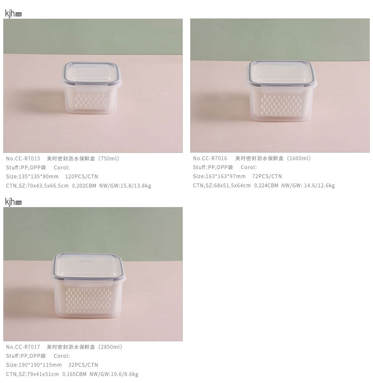 美時正方形密封瀝水保鮮盒(750ml/1600ml/2850ml)