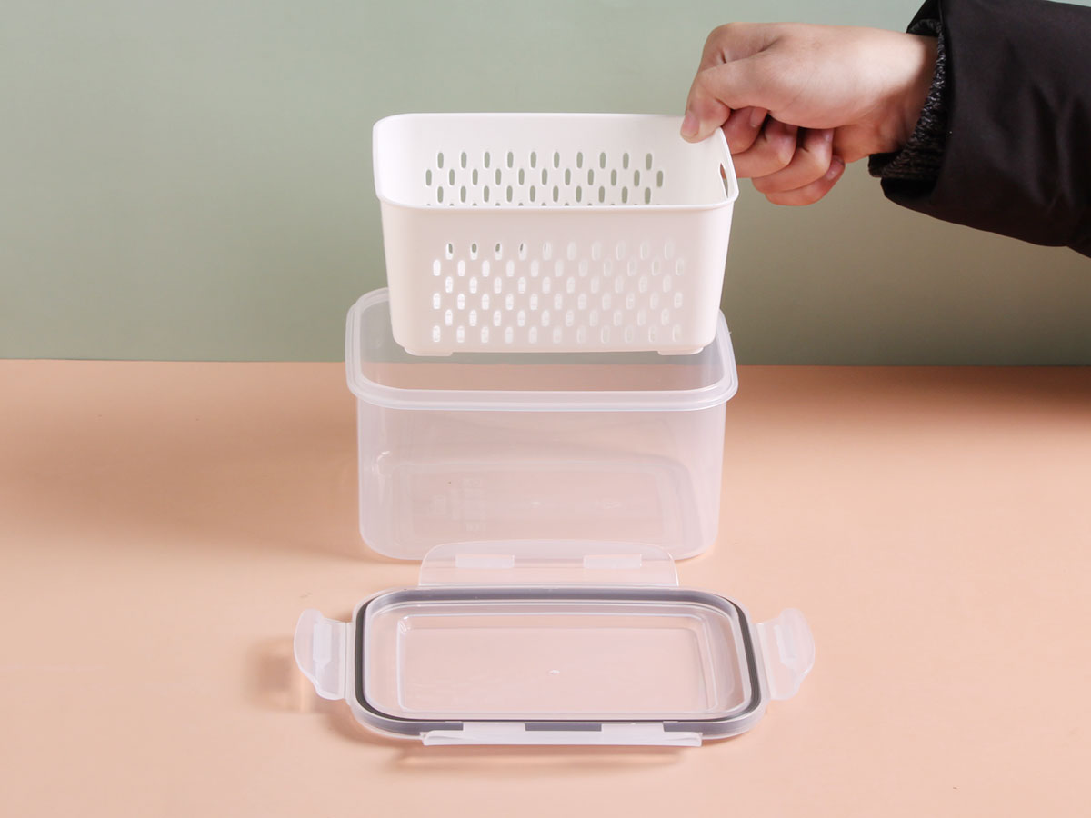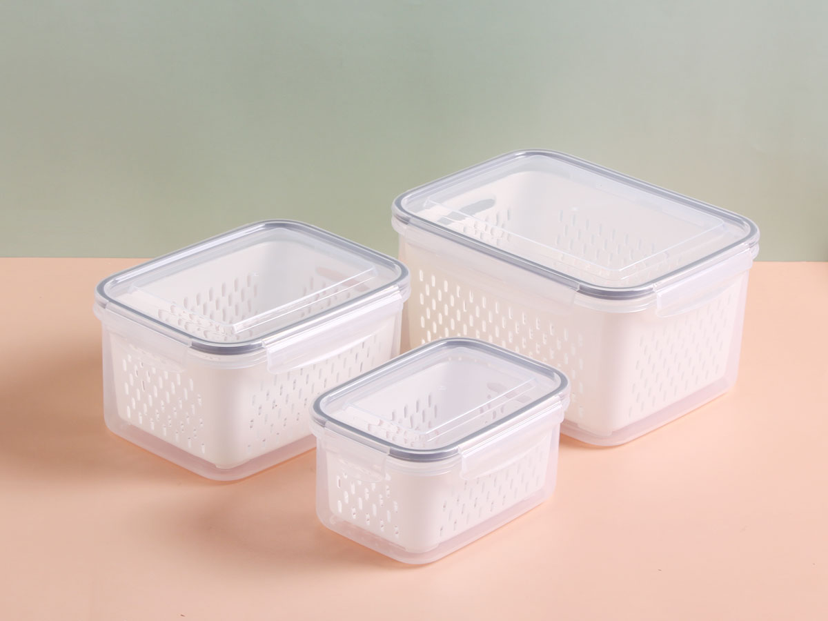 三件套密封瀝水保鮮盒(長(zhǎng)方形)