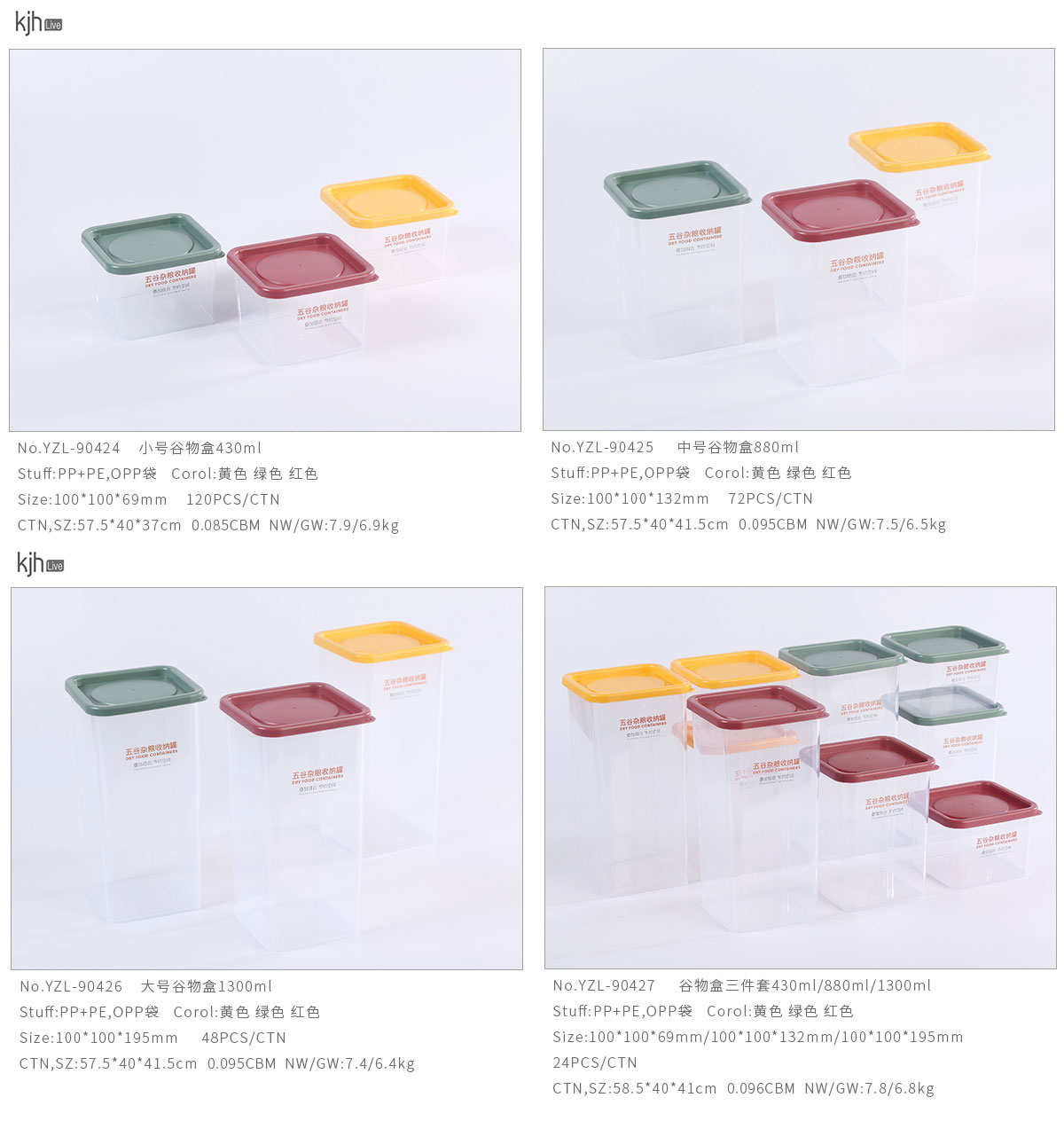 小號/中號/大號/三件套谷物盒430ml