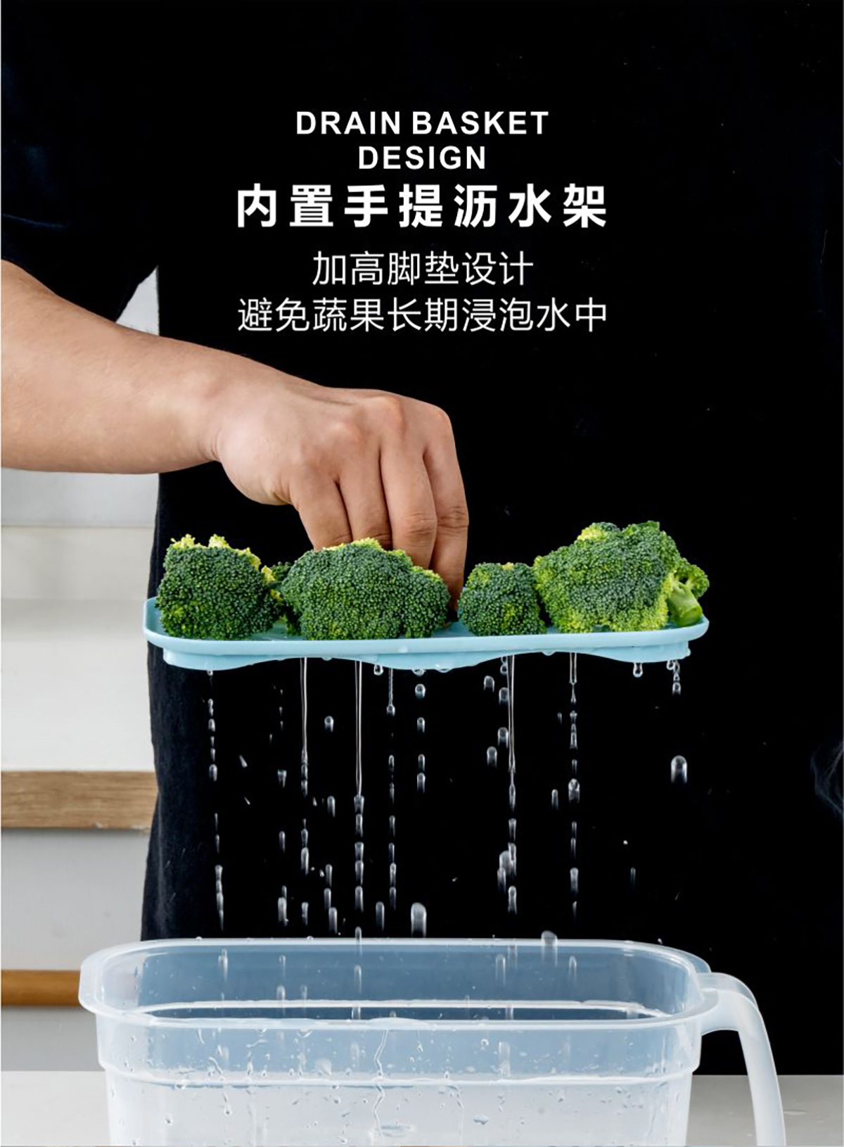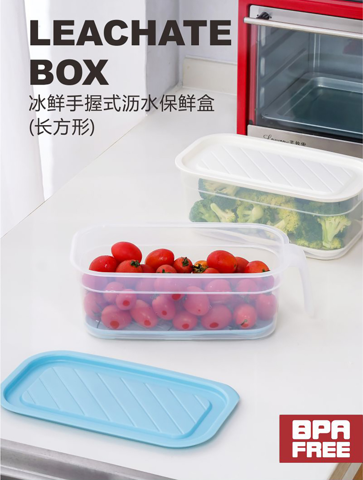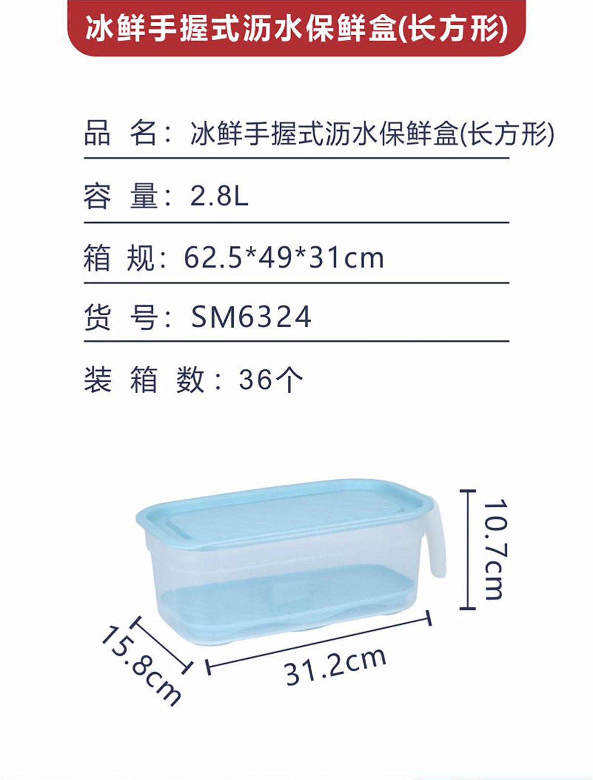 冰鮮手握式瀝水保鮮盒(長方形)2.8L