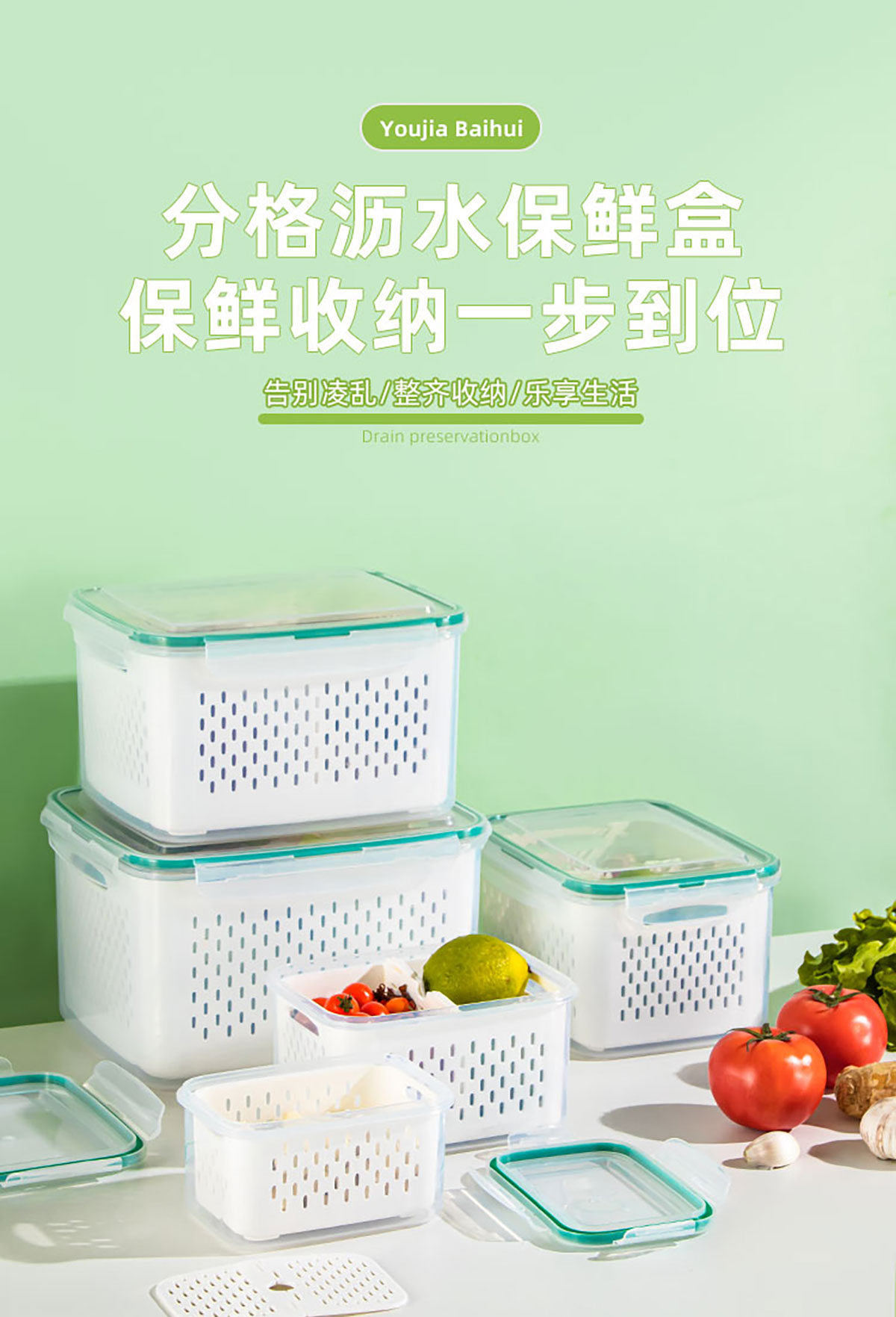 三件套/四件套/五件套密封分格瀝水保鮮盒