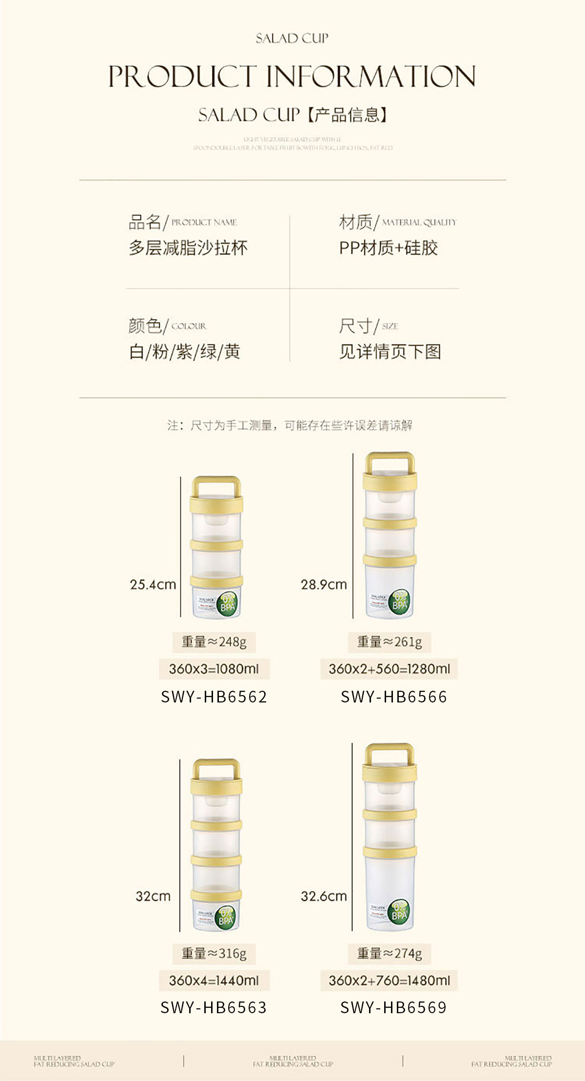 多層沙拉杯1080ml/1280ml/1440ml/1480ml