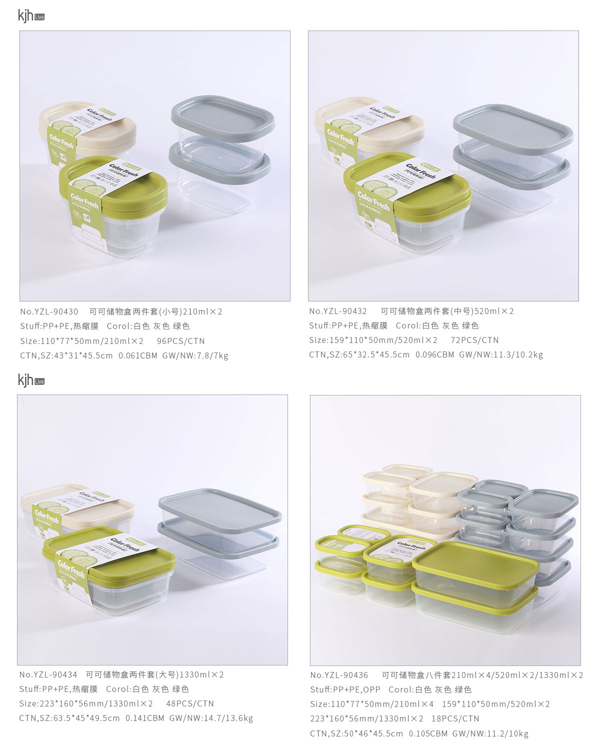可可儲(chǔ)物盒兩件套(210ml小號(hào)/520ml中號(hào)/1330ml大號(hào))/八件套
