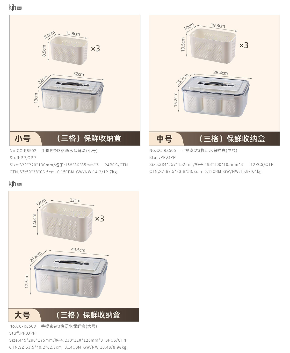 手提密封2格/3格/6格瀝水保鮮盒(小號/中號/大號)