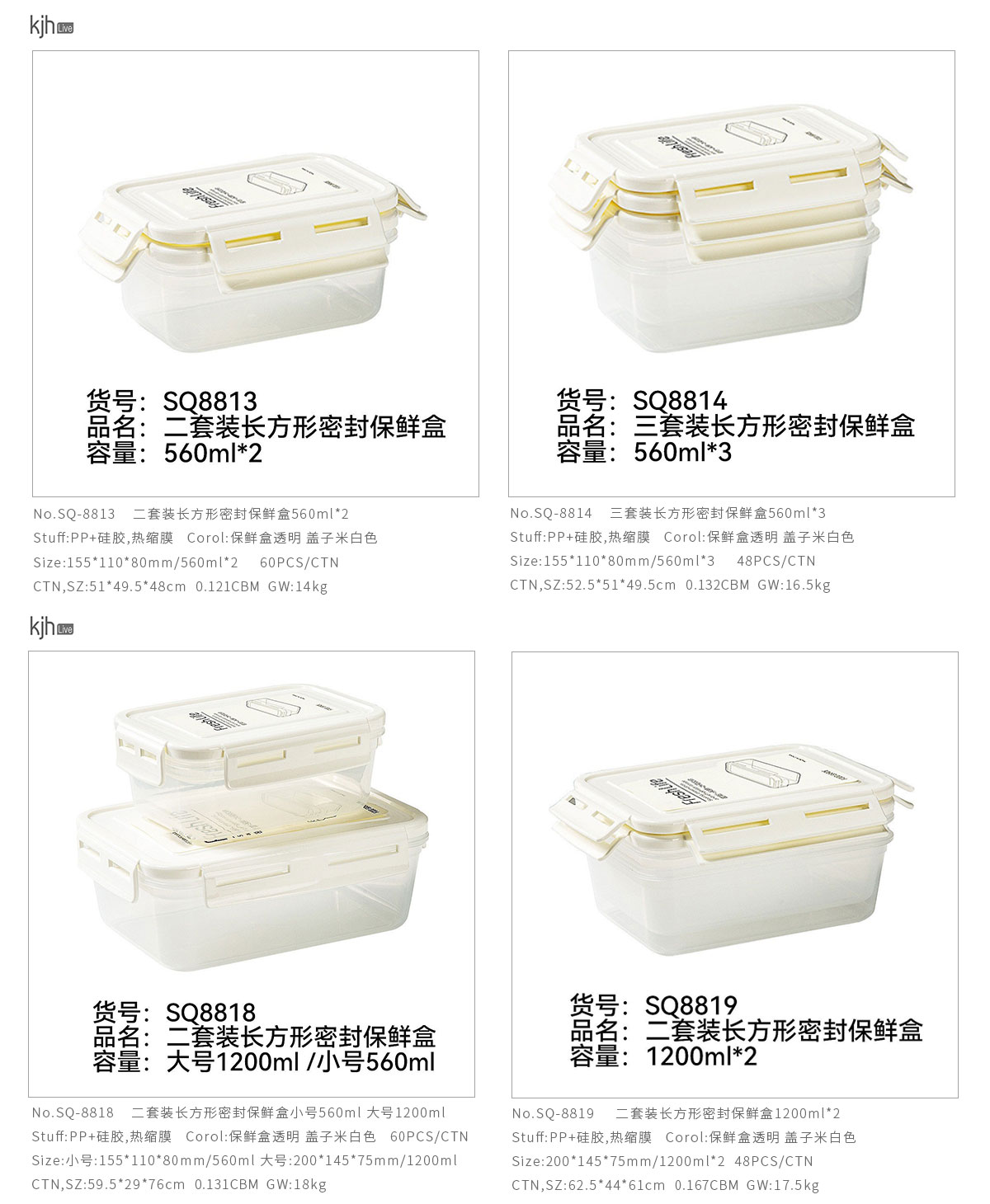 SQ-8819:200*145*75mm/1200ml*2