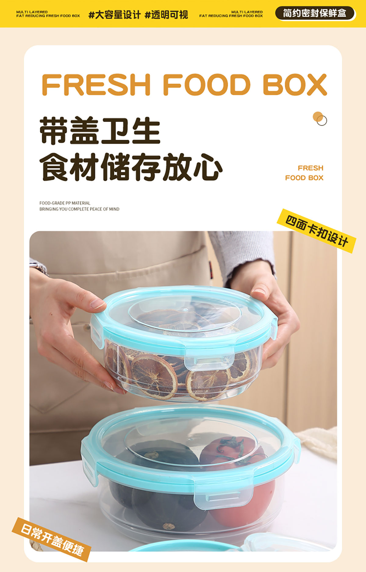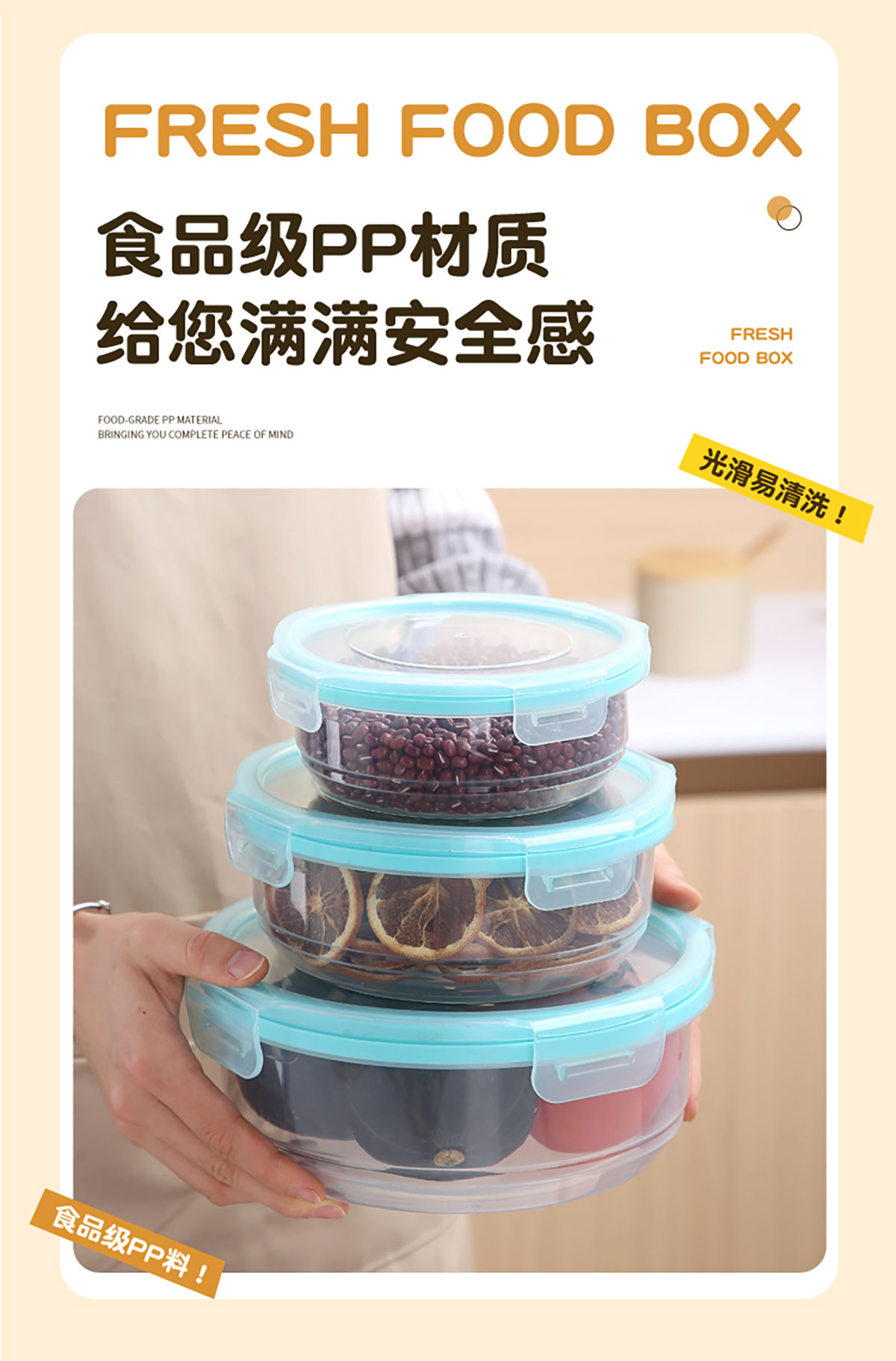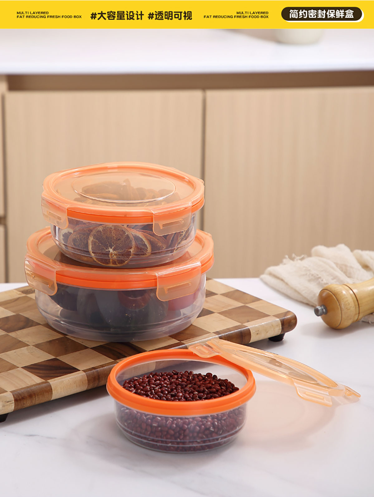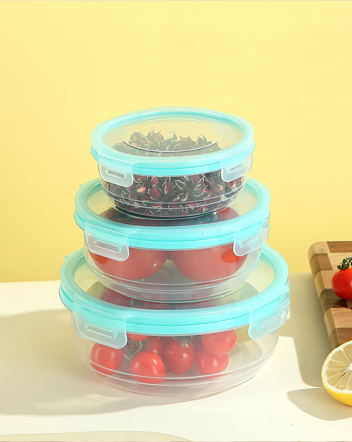 鮮凈無縫密封保鮮盒(圓形3件套600ml+1100ml+1900ml)