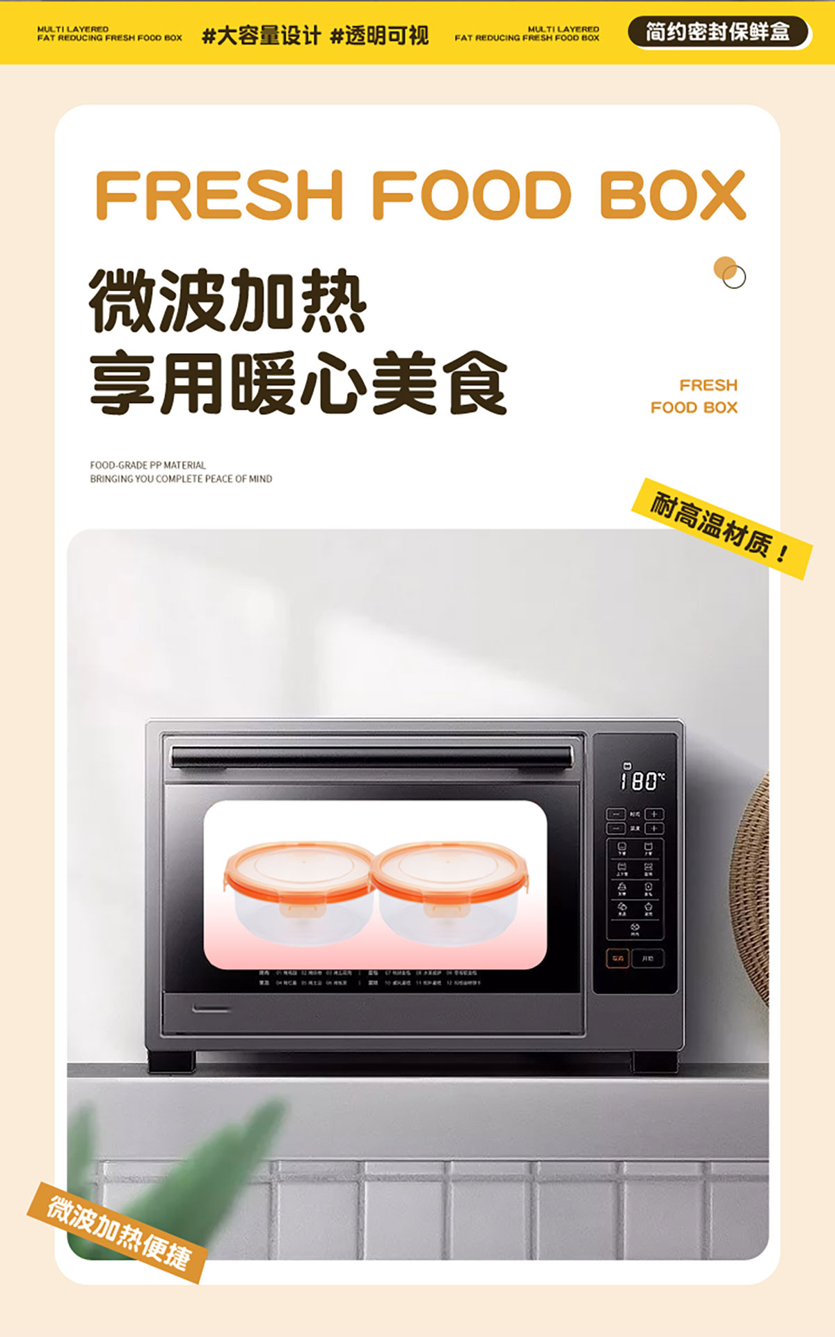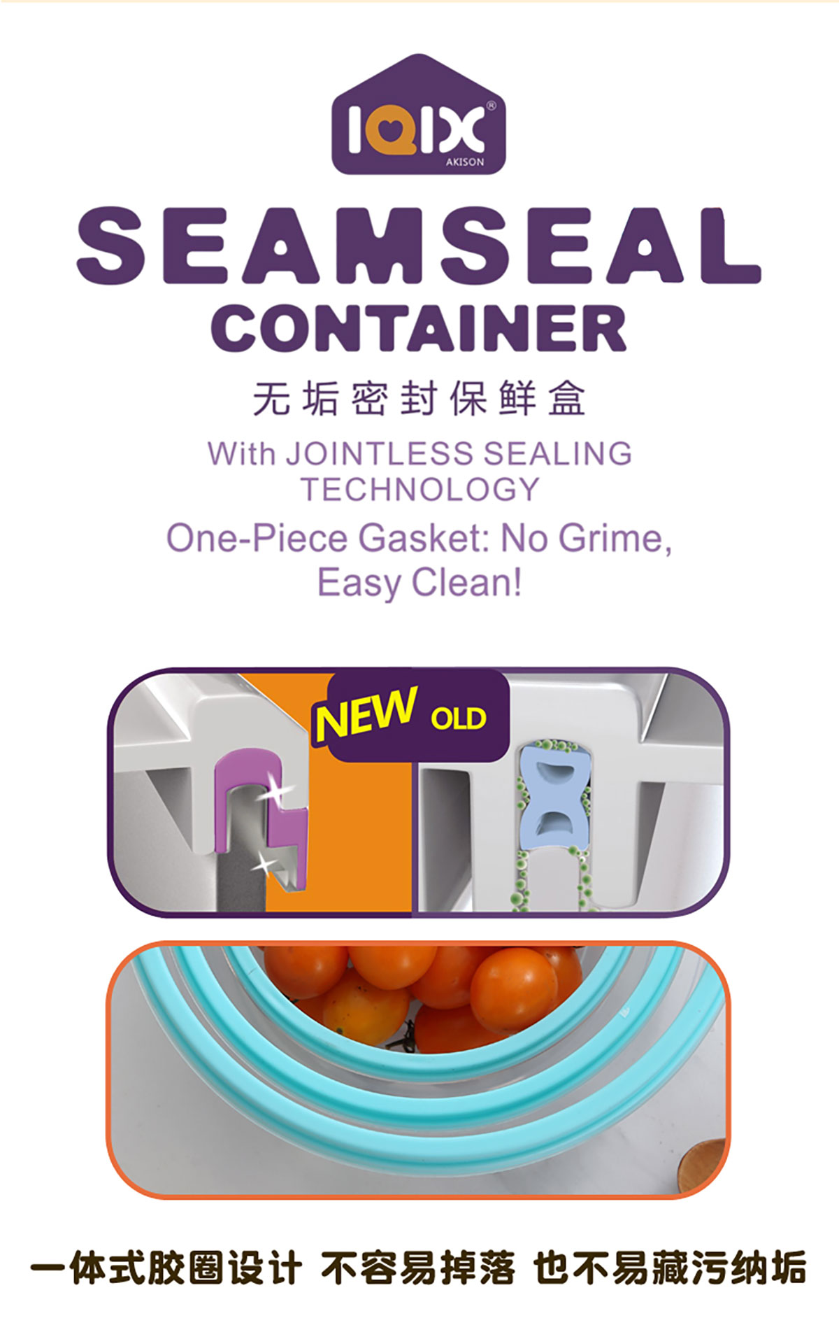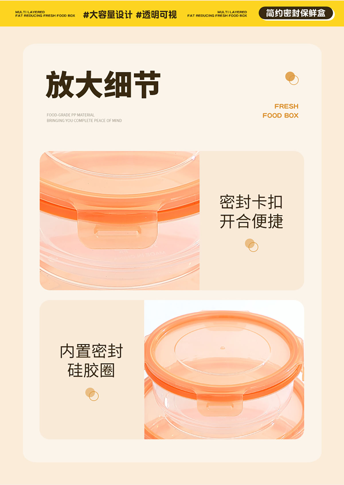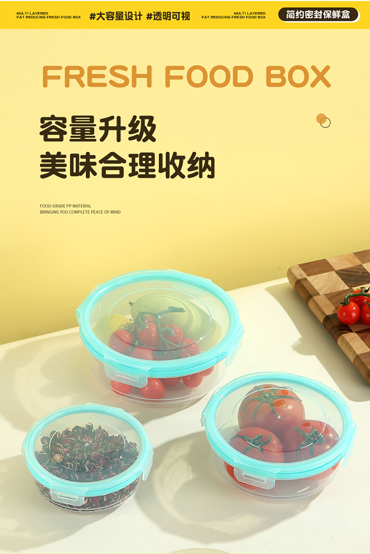 鮮凈無縫密封保鮮盒(圓形3件套600ml+1100ml+1900ml)