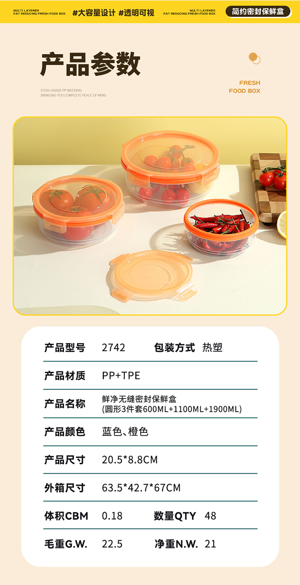 Size: 205*88mm/圓形3件套600ml+1100ml+1900ml