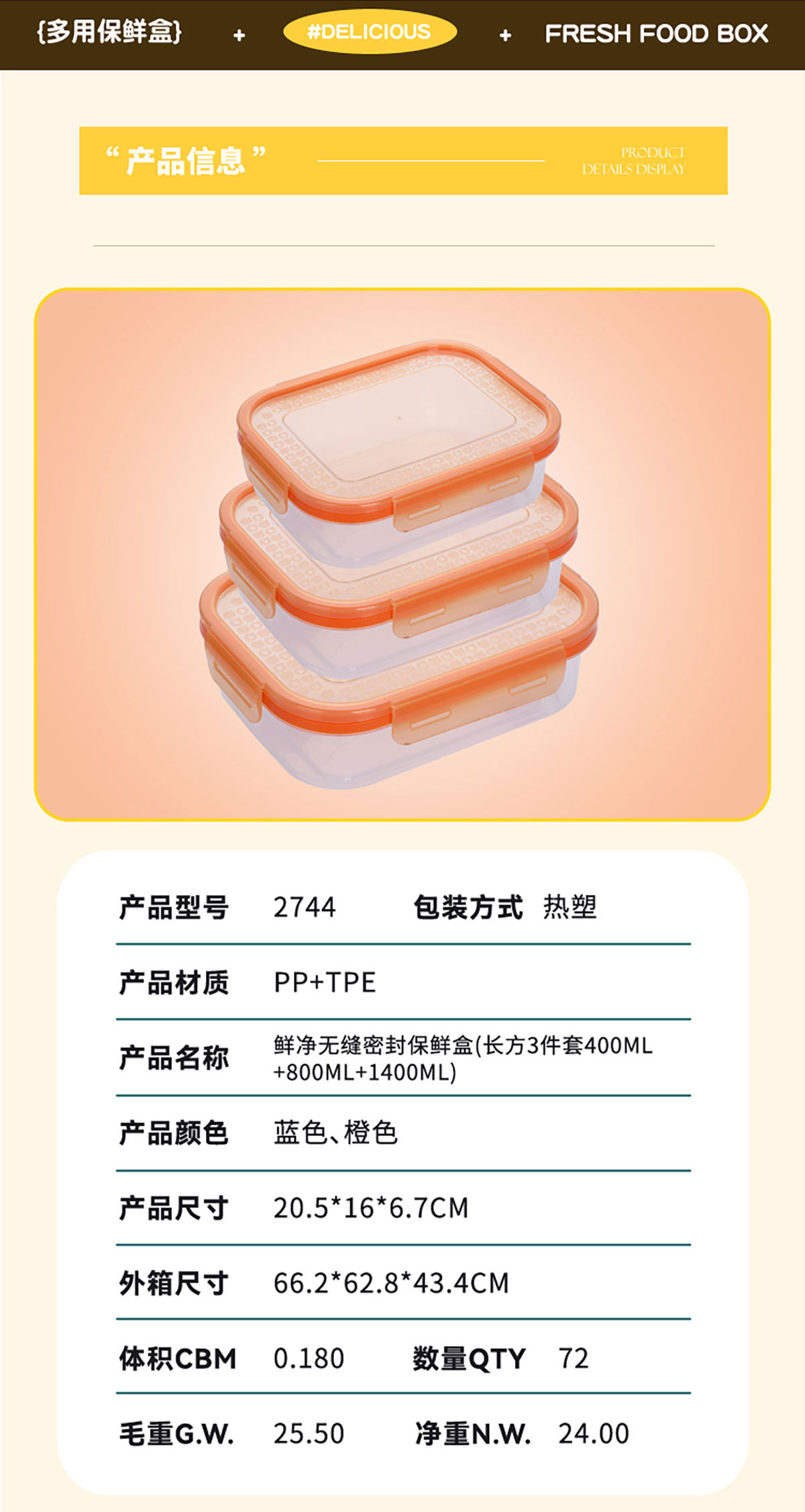 AQX-2744:205*160*67mm/長(zhǎng)方3件套400ml+800ml+1400ml