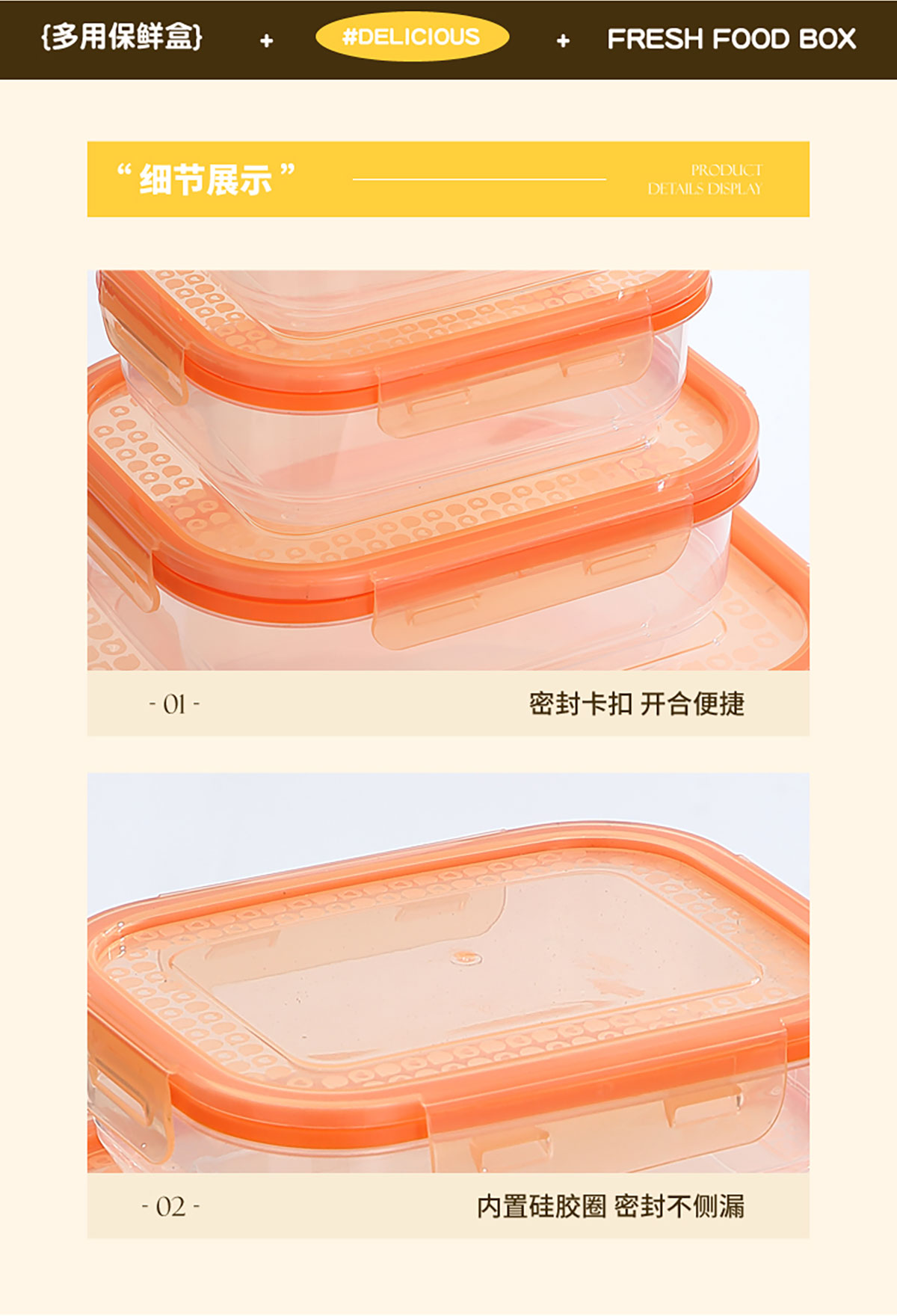 鮮凈無(wú)縫密封保鮮盒(長(zhǎng)方3件套/5件套)