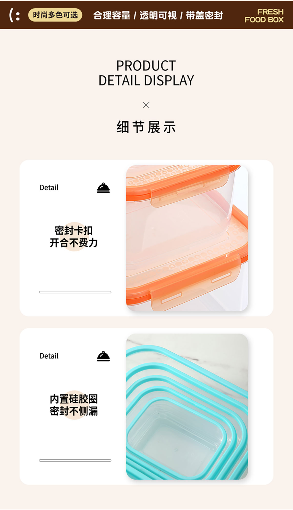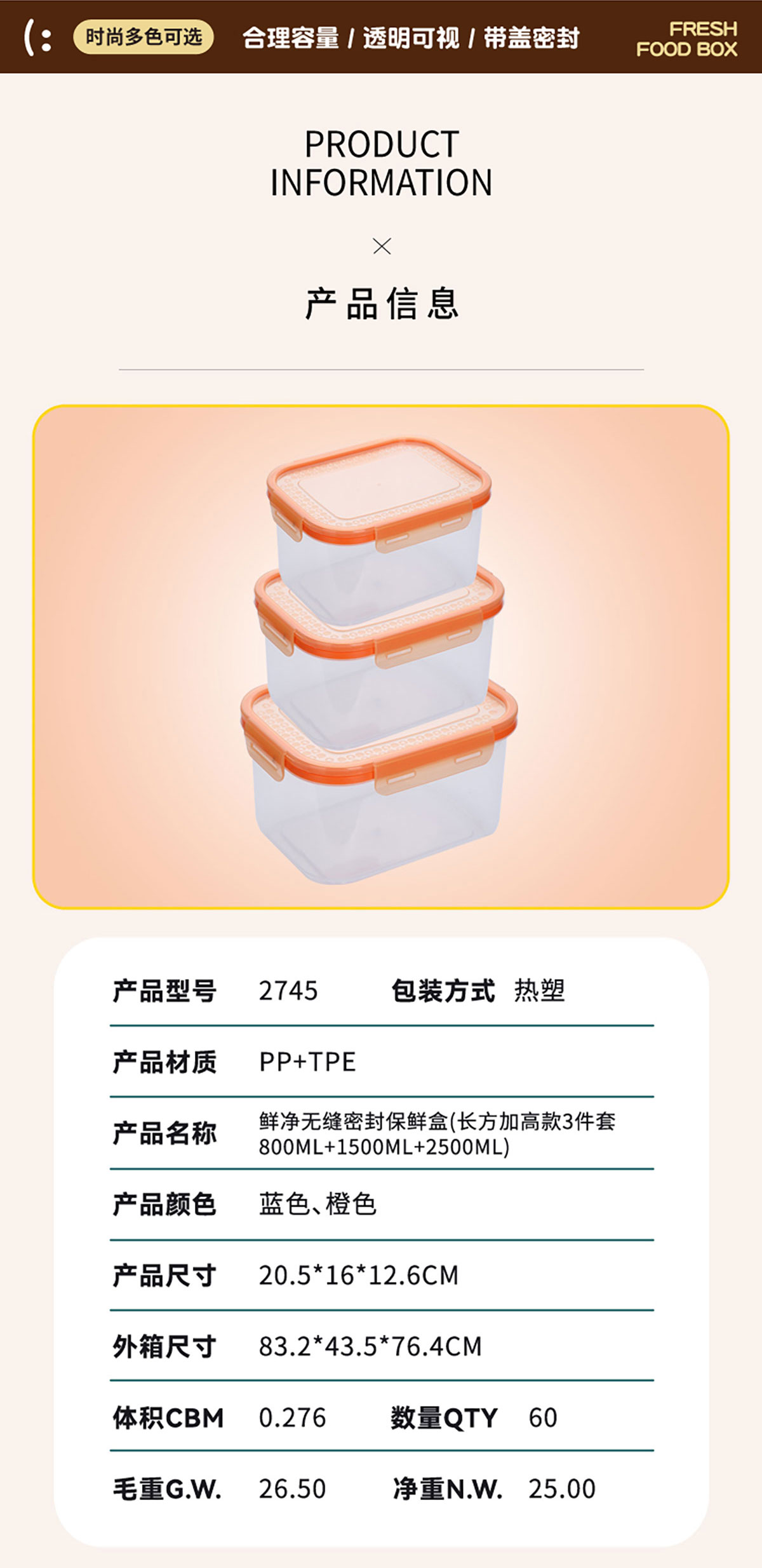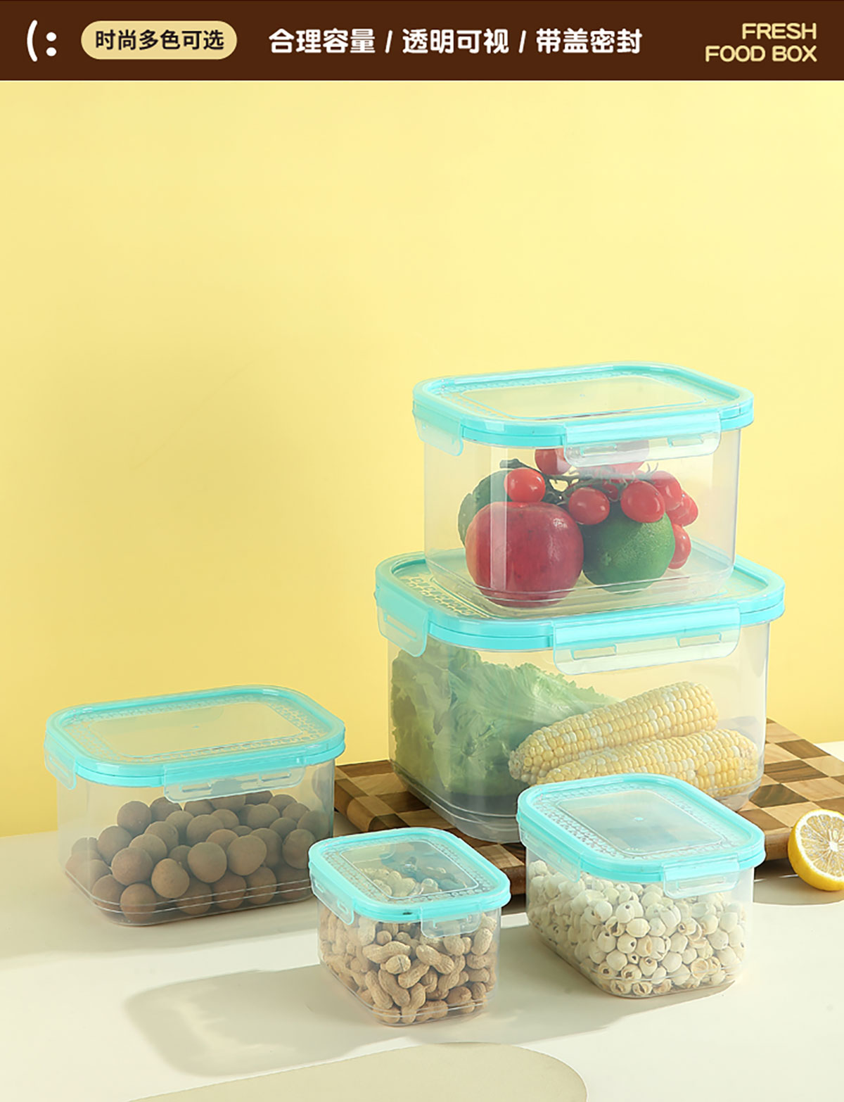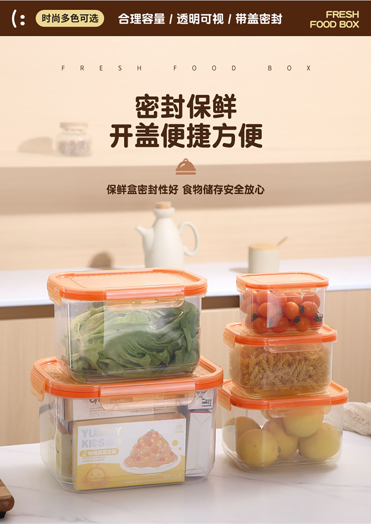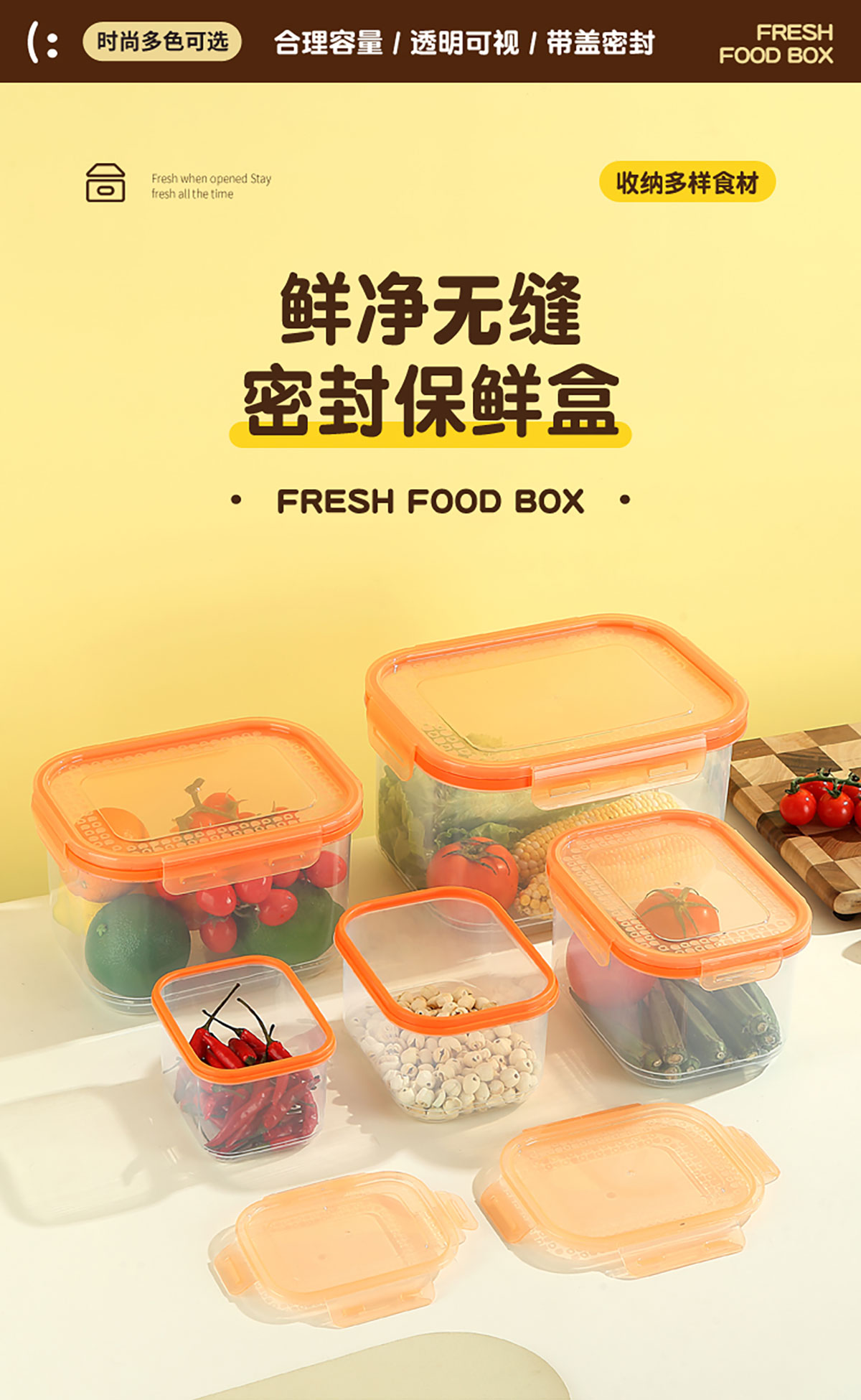 鮮凈無縫密封保鮮盒(長(zhǎng)方加高款3件套/5件套)