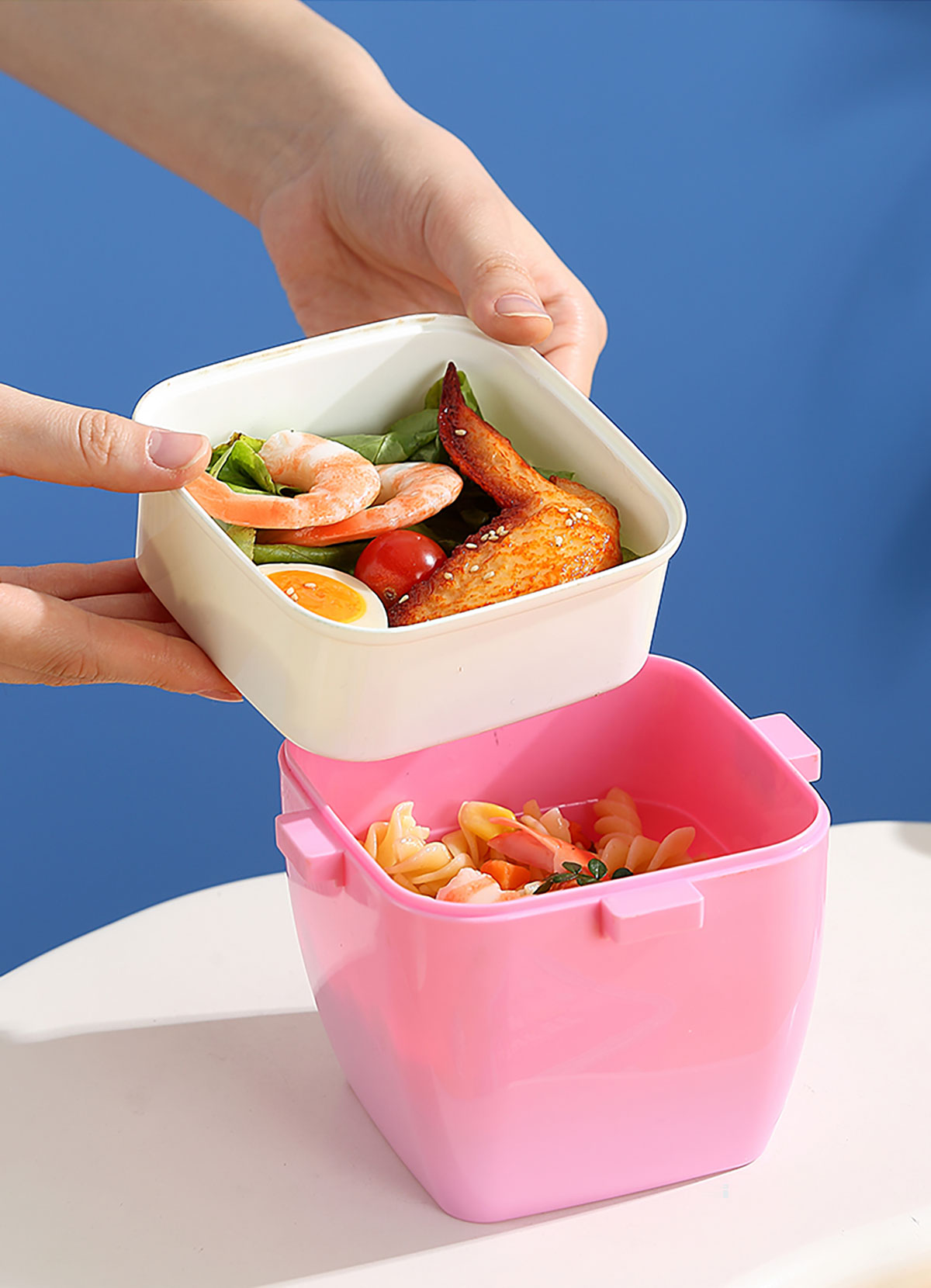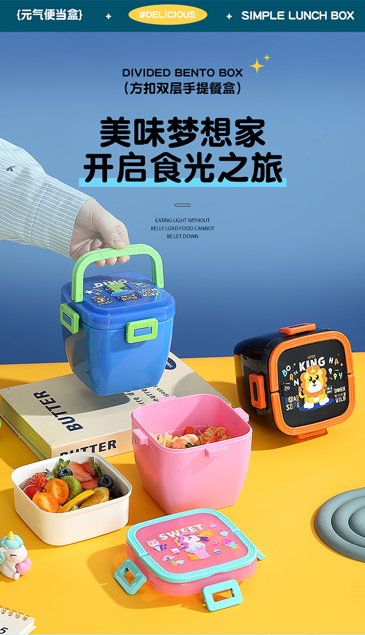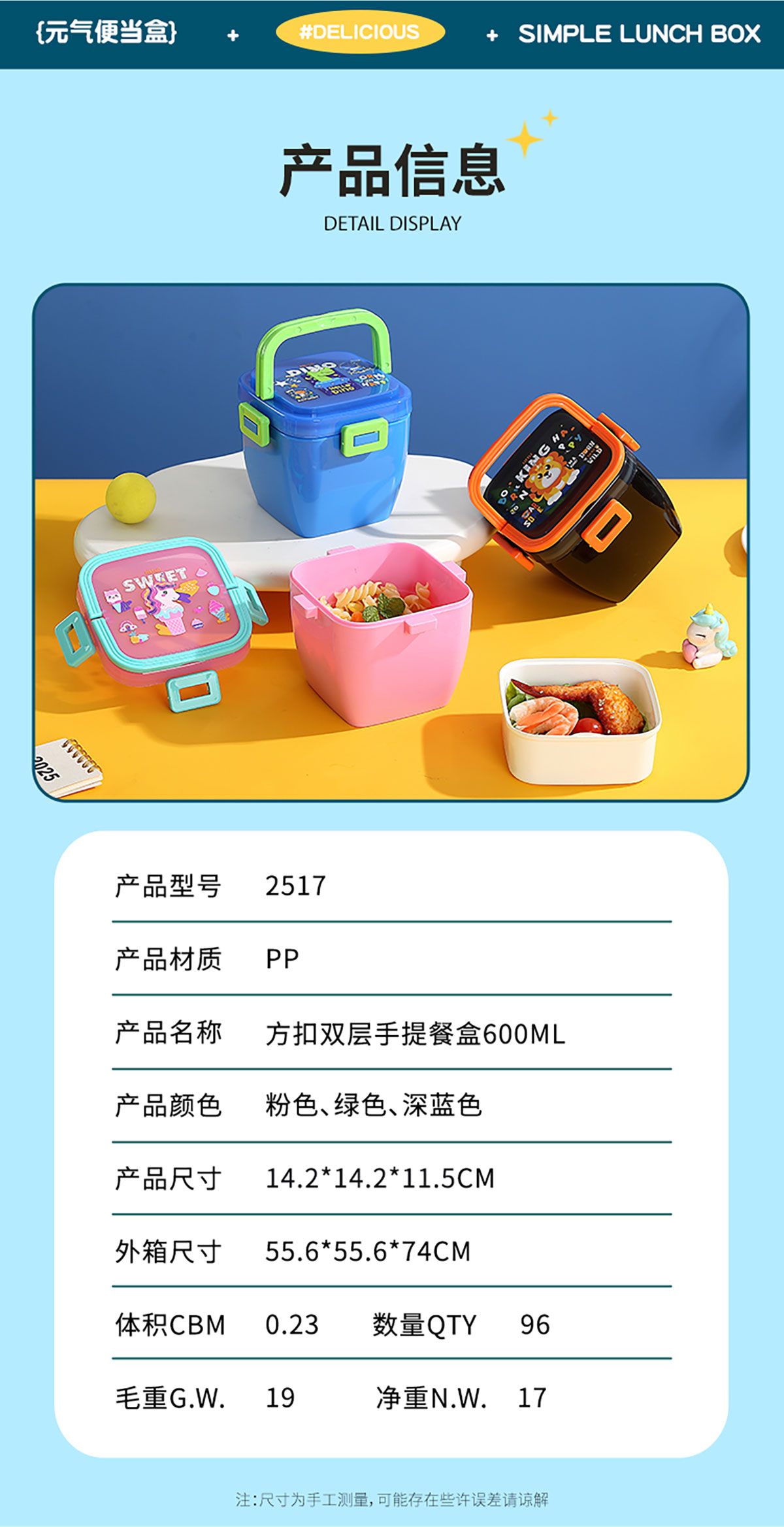 方扣雙層手提餐盒600ml+PP勺