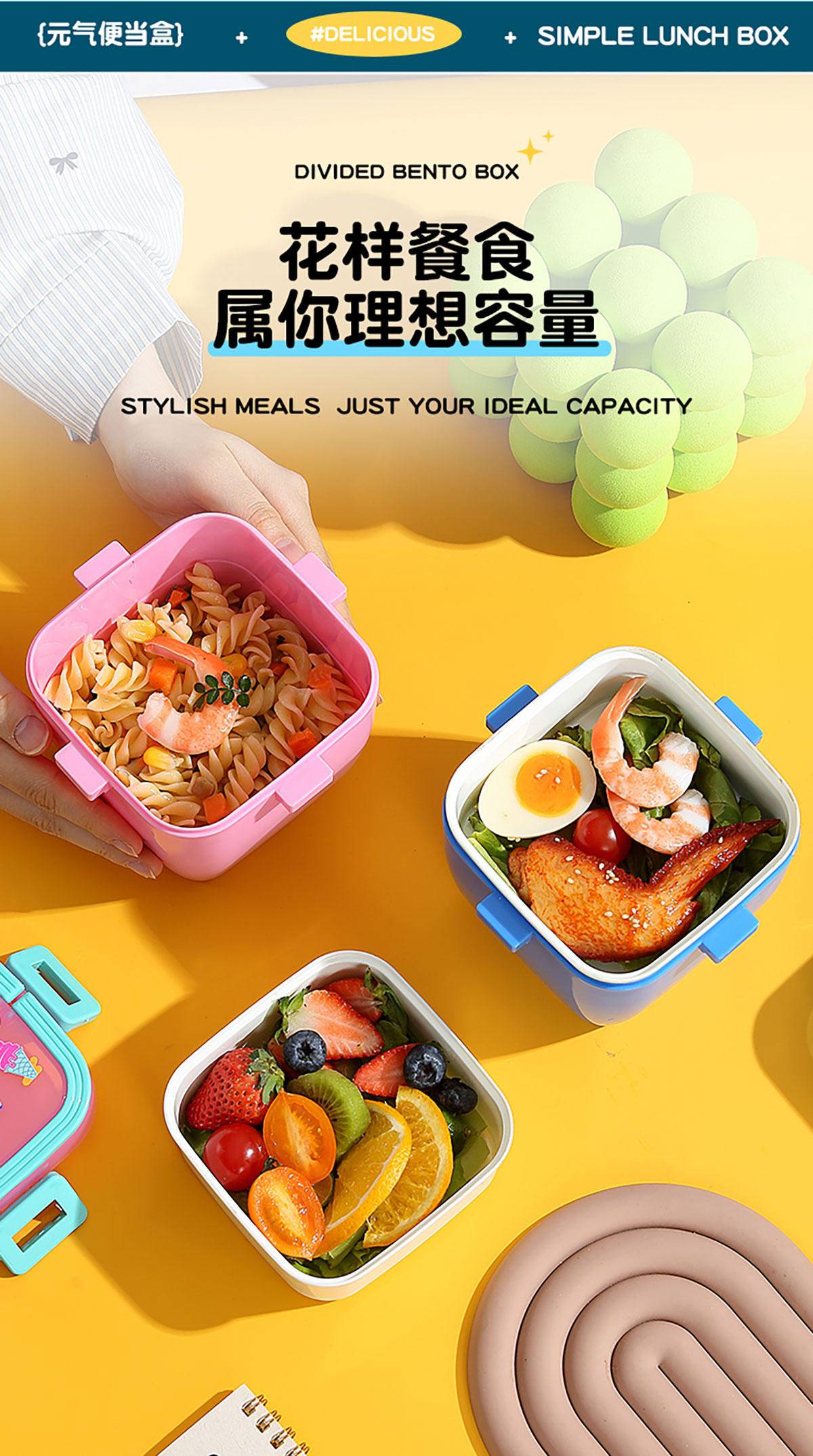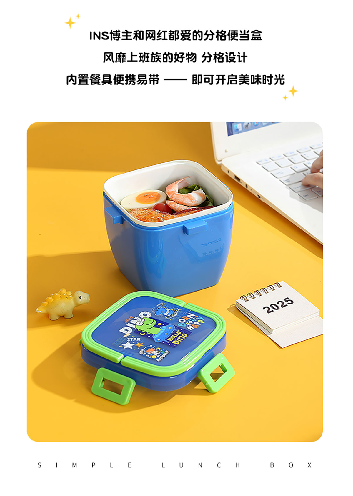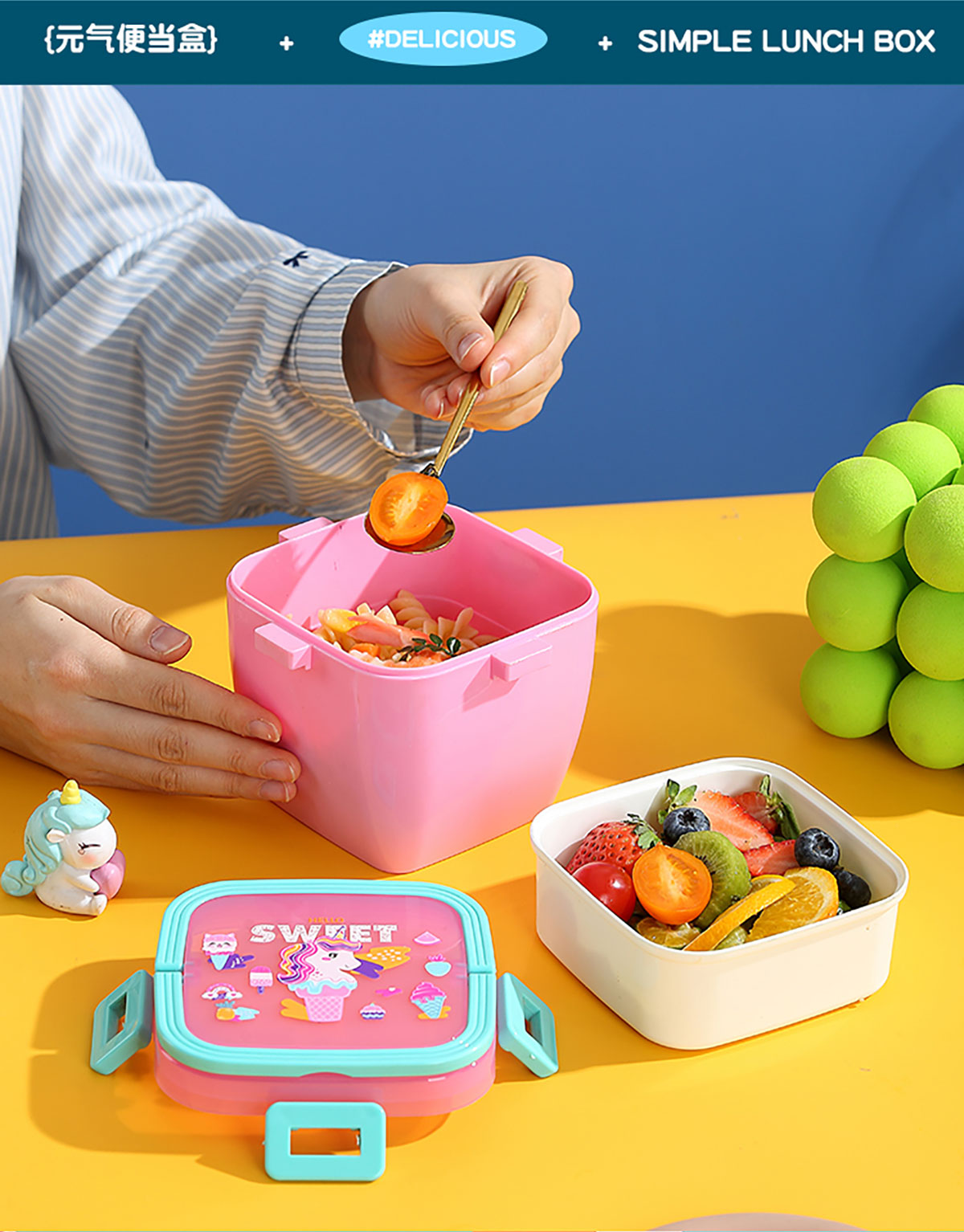 方扣雙層手提餐盒600ml+PP勺