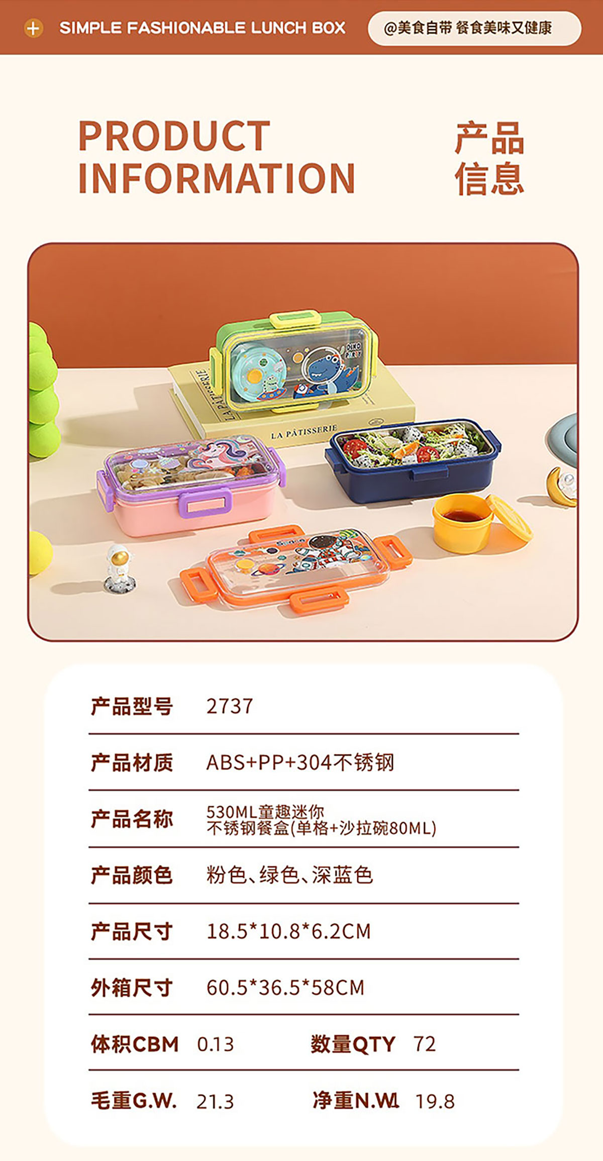Size: AQX-2737:185*108*62mm/單格530ml+沙拉碗80ml