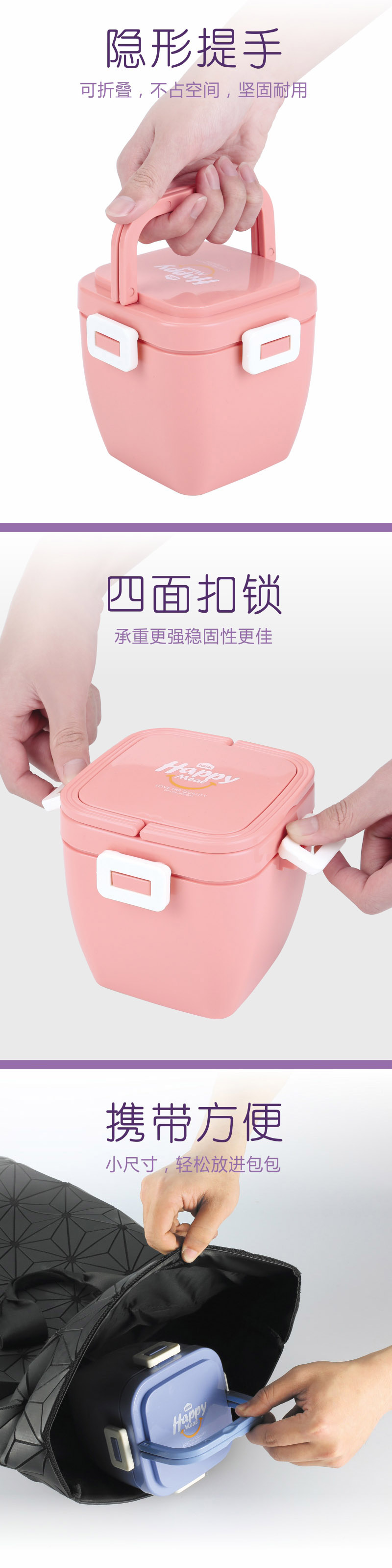 方扣雙層手提飯盒800ml