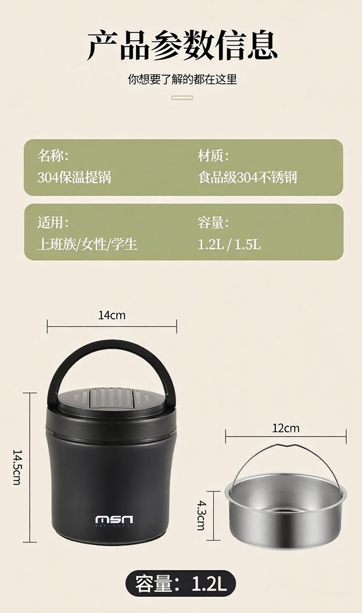 Size: MSN-1005(小號):140*145mm/1200ml 格子:120*43mm