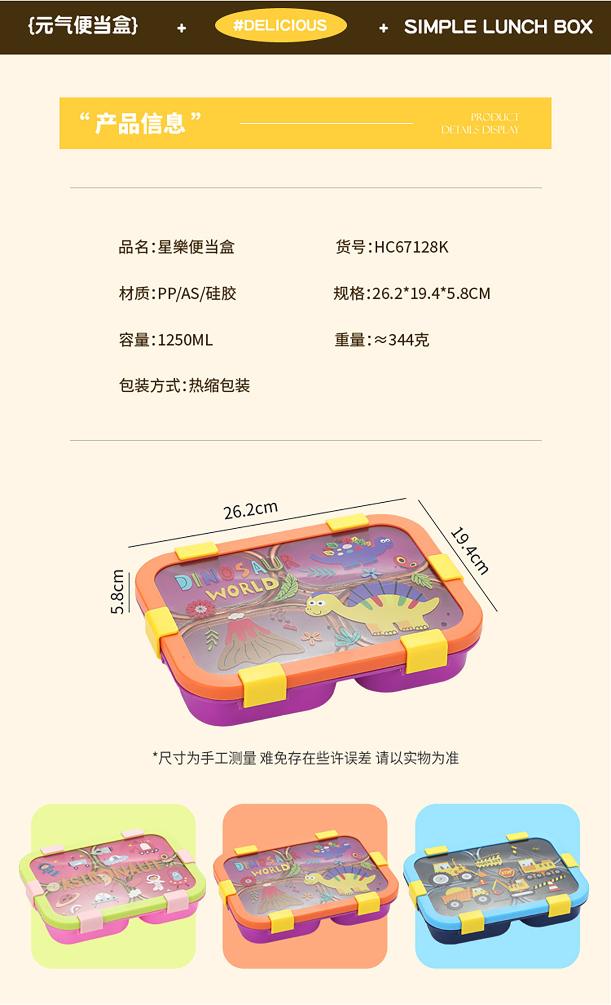 Size: 262*194*58mm/1250ml