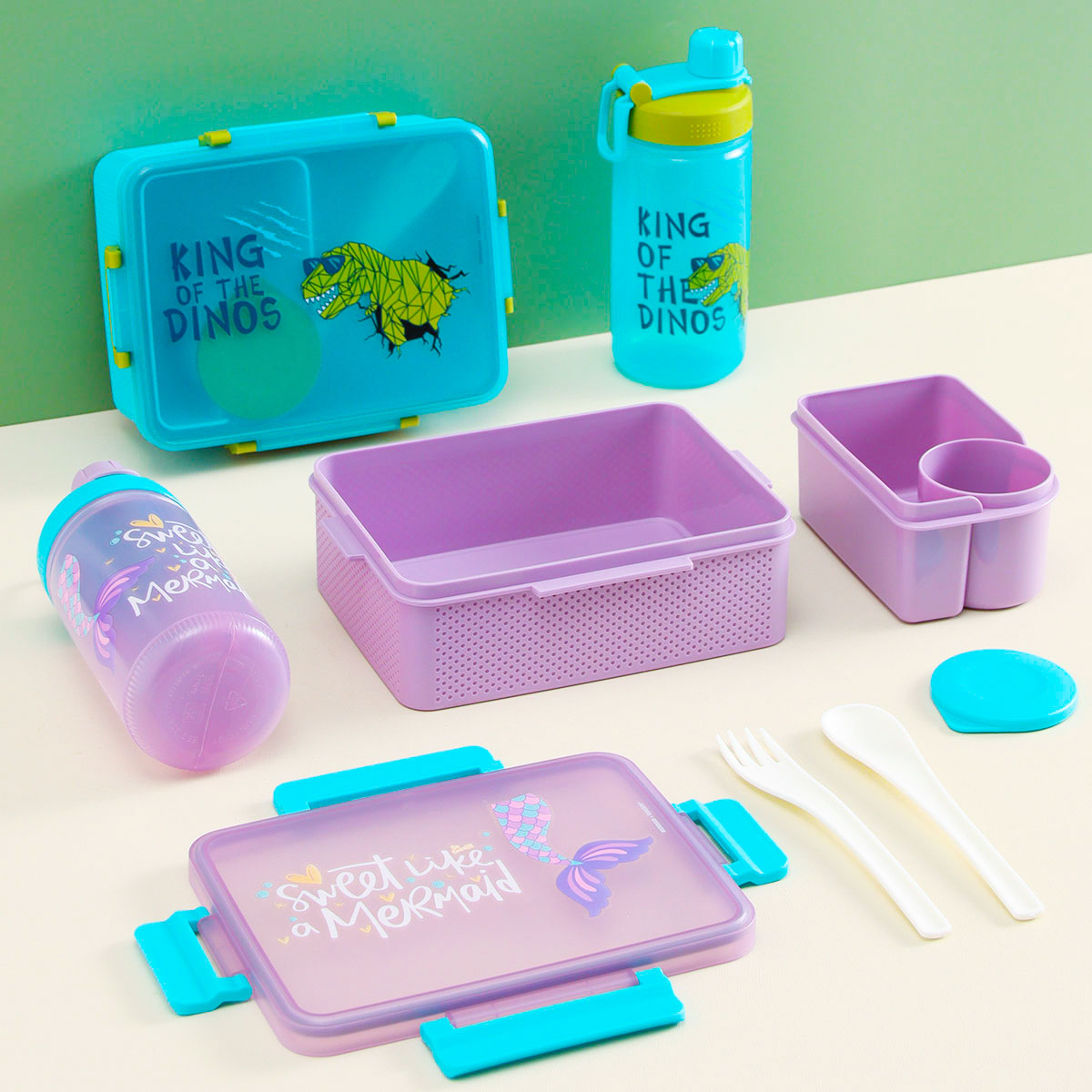 童彩3格飯盒+運動水壺套裝(含內(nèi)盒1500ml+500ml)
