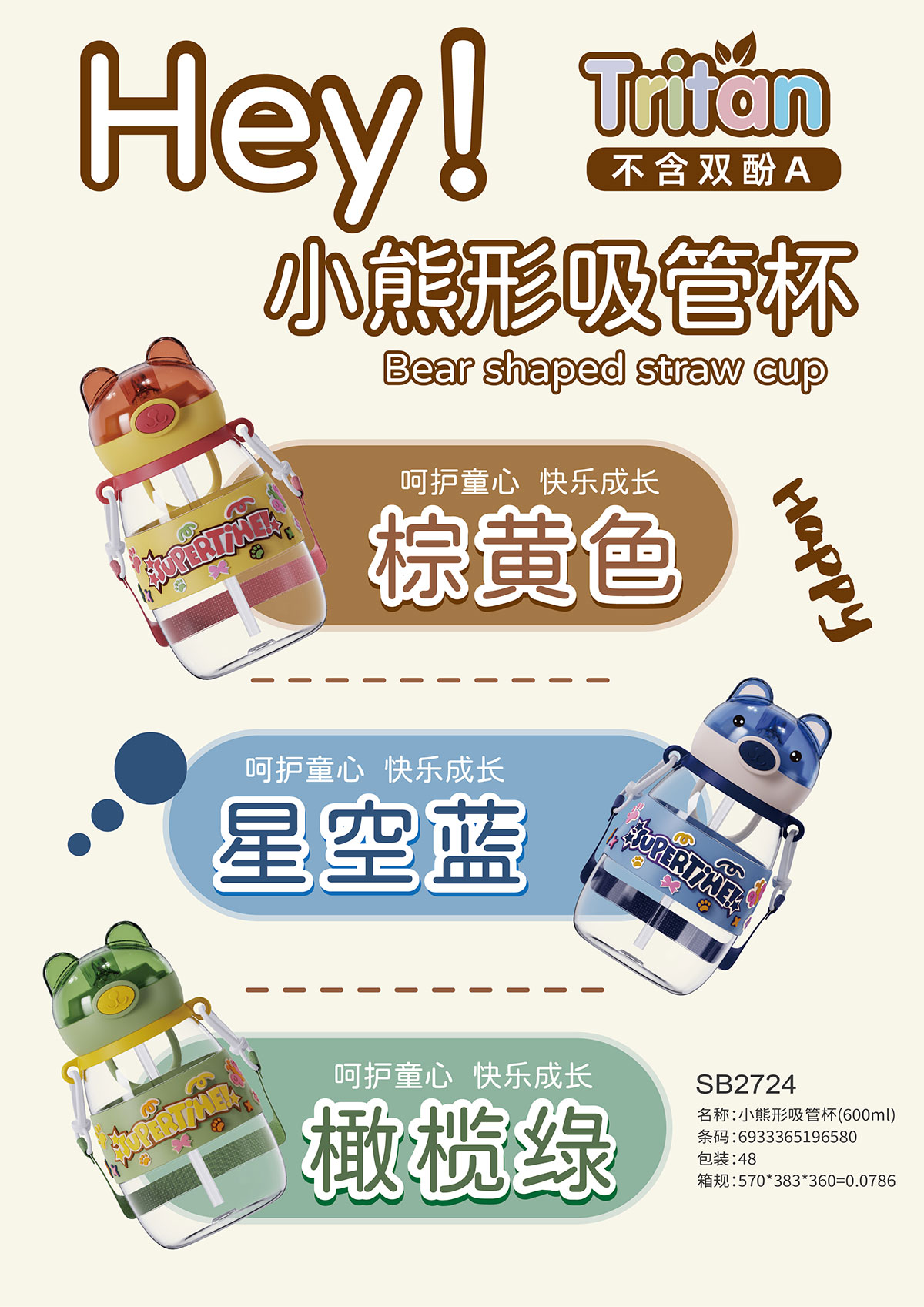 小熊形吸管杯(600ml) 彩盒裝/OPP裝